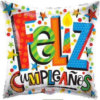 ANAGRAM Feliz Cumpleaños 9″ cuadrado blanco